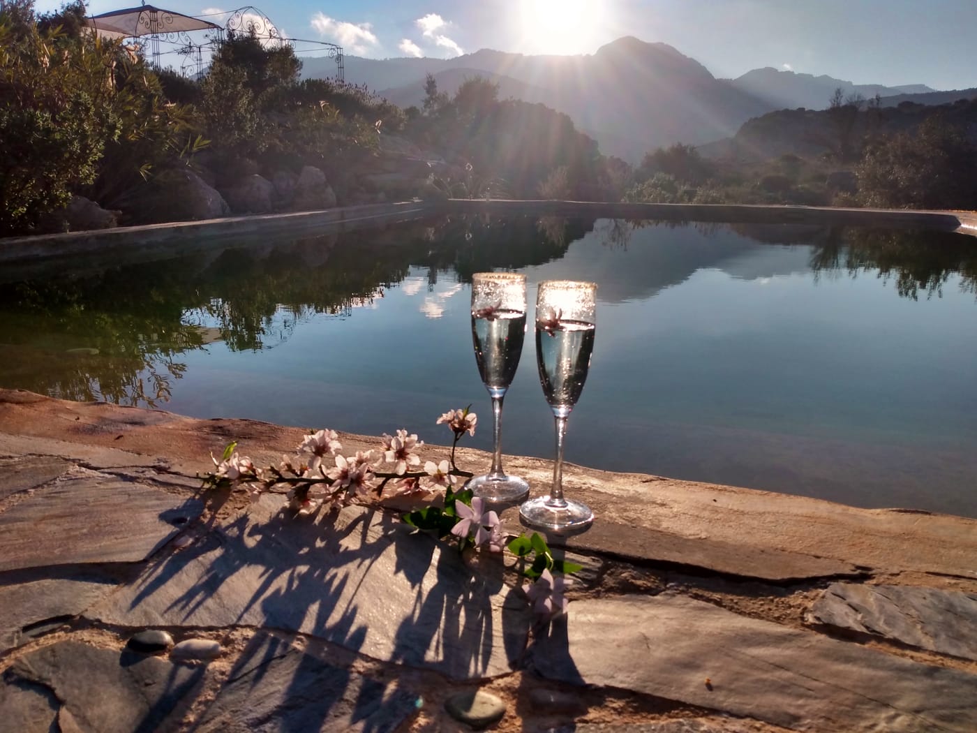 In the warmer months, enjoy a splash in the pool. Surrender to the feeling of swimming in a mountain lake, being surrounded by natural mountain vegetation, herbs and Mediterranean oak trees.